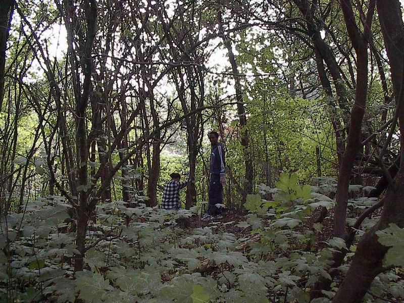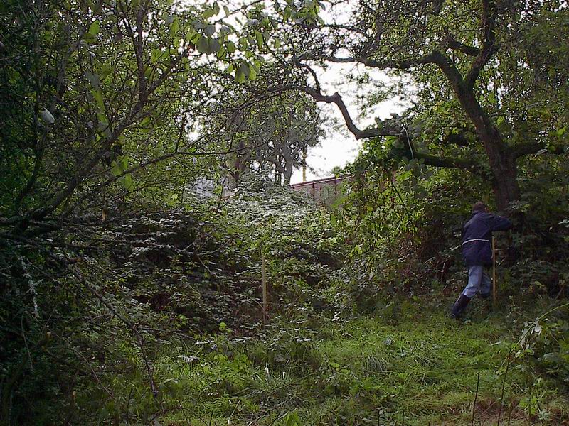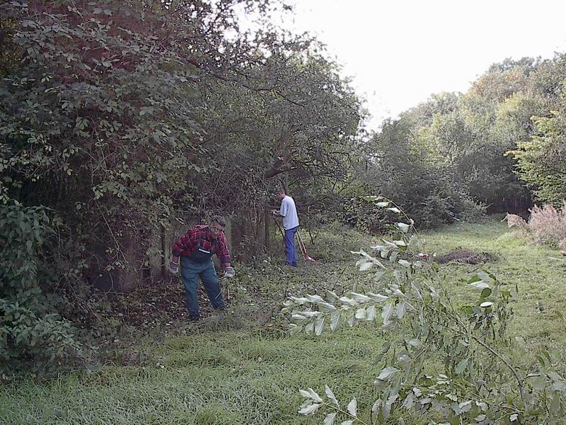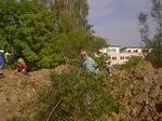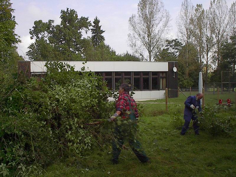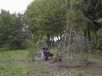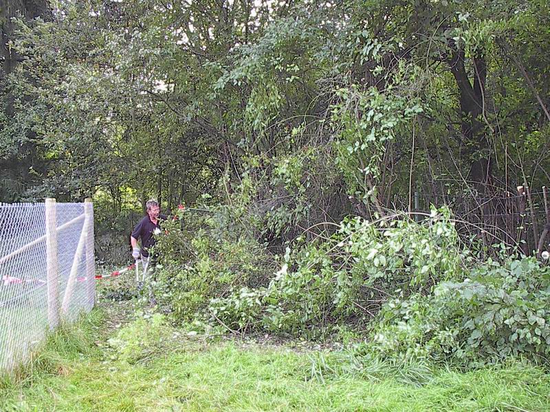 häuft dabei jede Menge geschlagenes Gehölz auf.