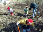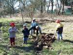 Zunächst schnitten wir aus dem Inneren des kleinen Wäldchens ... ... mit der kräftigen Unterstützung unserer Kleinen geeignete ... ... Weidenstämme heraus.