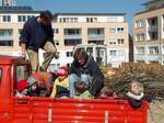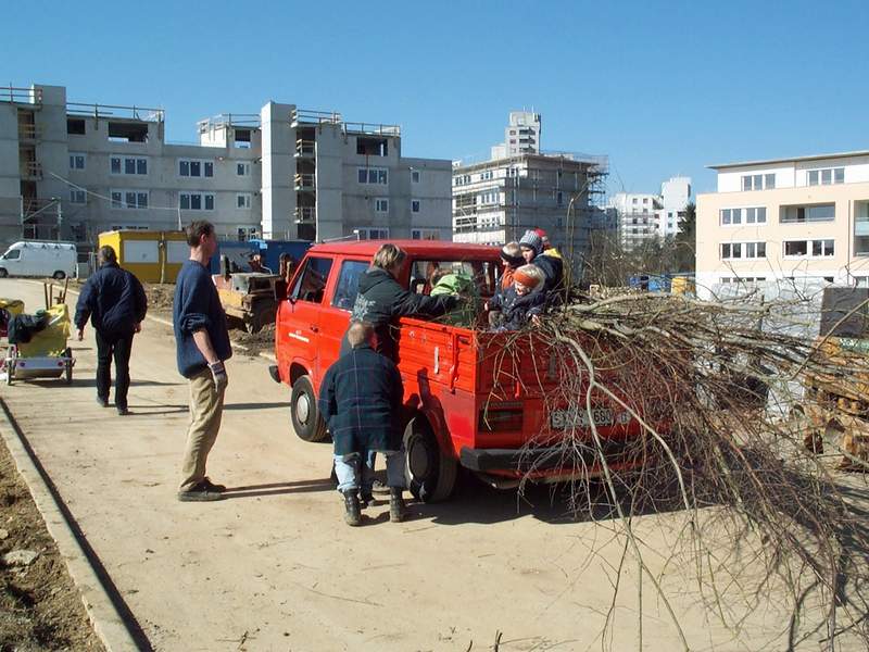 Nachdem wir diese auf den Bus verladen hatten, setzte sich die ...  ... Mannschaft gleich mit dazu und fuhr so im Schritttempo (wie in Spielstrassen üblich)  ... ... zu dem Gelände des zukünftigen Abenteuer- spielplatzes hinter dem Spielberg.