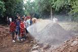 Aber das sollte sich bald ändern. Kinder und Jugendliche durften gemeinsam den staubtrockenen Boden ... ... mit dem vielen Wasser tränken.