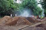 Die durch lange Trockenheit sehr stark ausgehärteten Erdhügel konnten allerdings ... ... mit dem einfachen Handwerkzeug kaum bearbeitet werden. Dr. Martin Greitmann hatte die rettende Idee. Er rief die Berufs- feuerwehr der Stadt Stuttgart zur Hilfe!