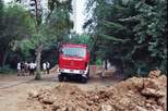 Noch mal ein Blick auf Fahrradbahn mit Löschfahrzeug. Da war nicht nur der Boden nass geworden. Dann war auch diese Aktion abgeschlossen.