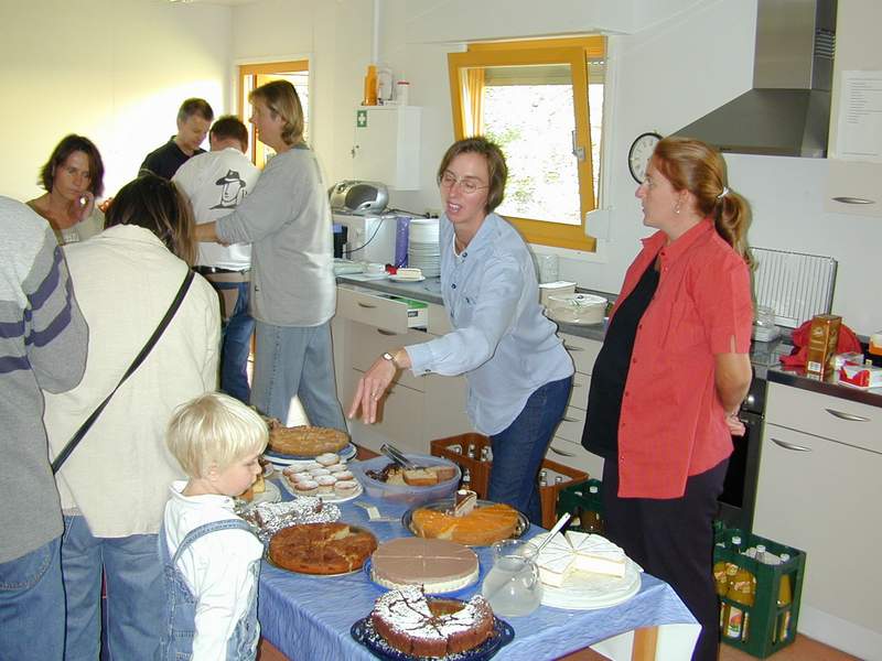 Im Malzimmer wurde der gute Kuchen gegessen. Die Kinder fühlten sich eh wohl in "Ihrem Kindi". Manchmal war warten angesagt.