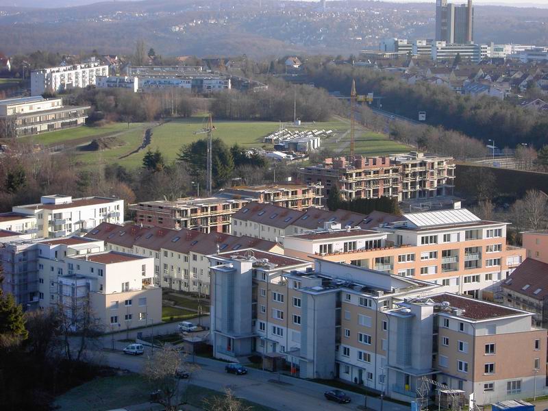 Blick nach Südwesten. Blick in den Lauchhau. Blick zur Universität.