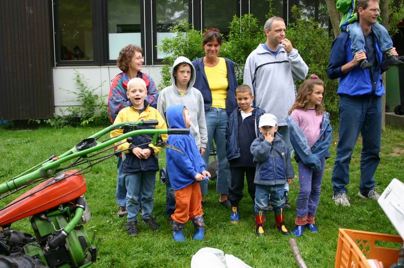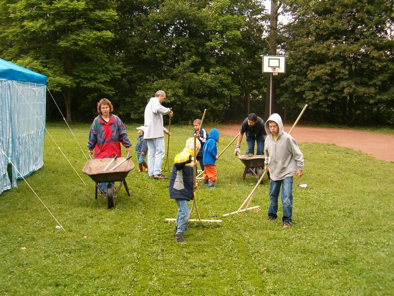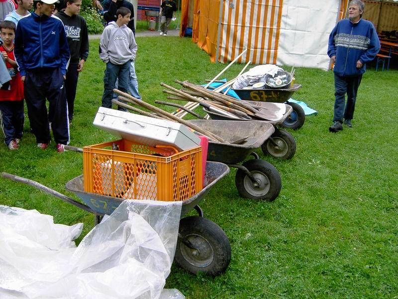 Schubkarren verladen. Da waren so viele Helfer, dass es