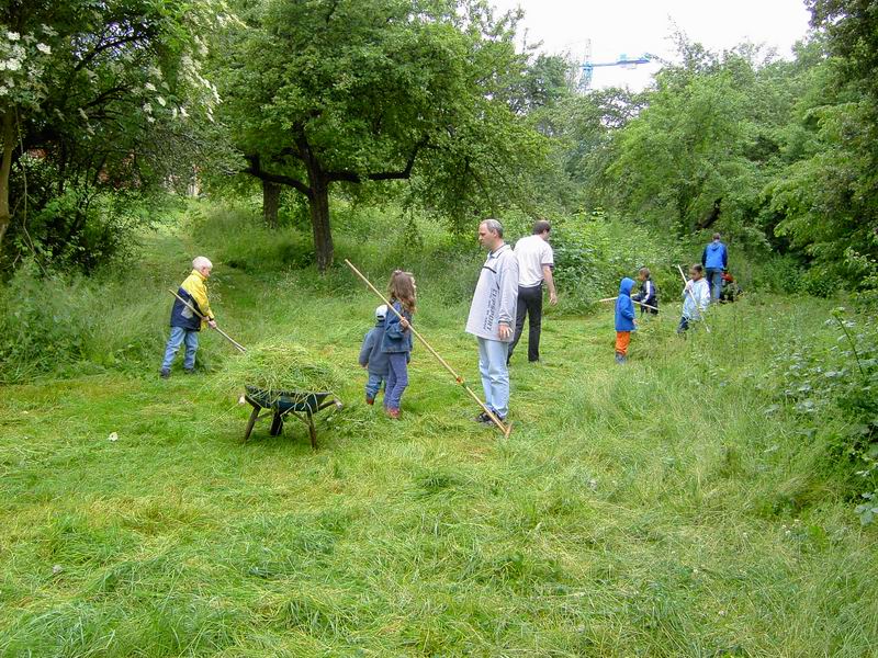 endlich kann es losgehen. Der Mähtrupp schnappt sich sein