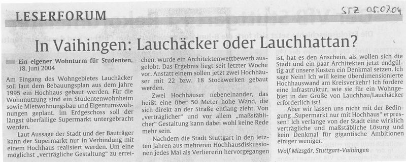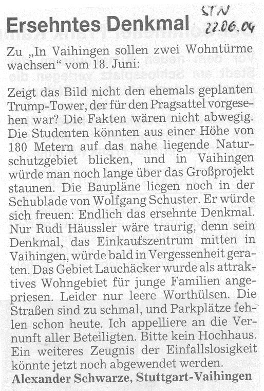 am Wettbewerb für das Hochhaus im Grünstreifen zwischen