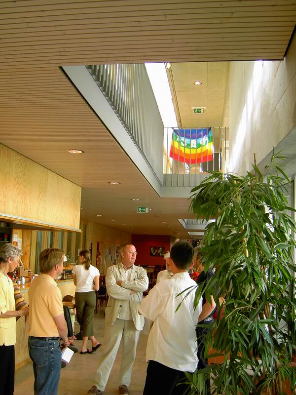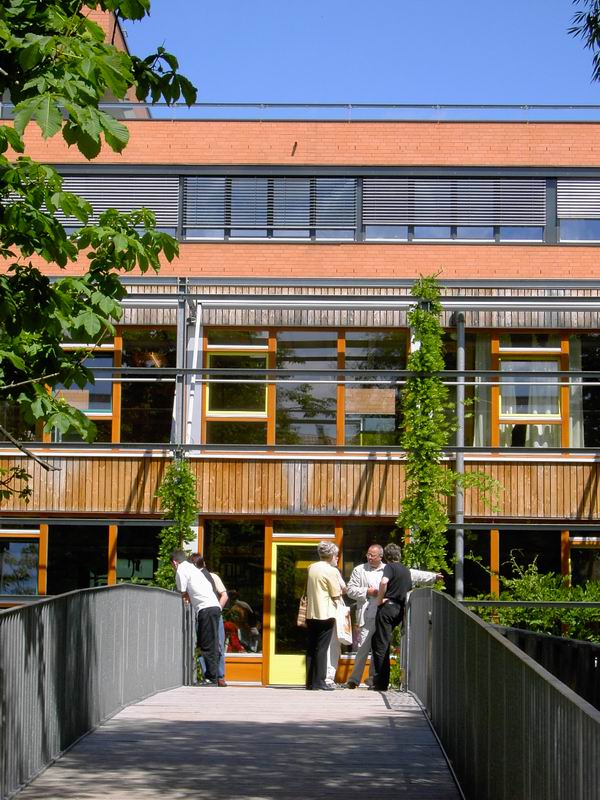 Nochmals der Blick über die Brücke auf die versammelten Teilnehmer der Planungsgruppe ... ... für den KITA-Neubau in den Lauchäckern. Eine Impression der Architektur ...