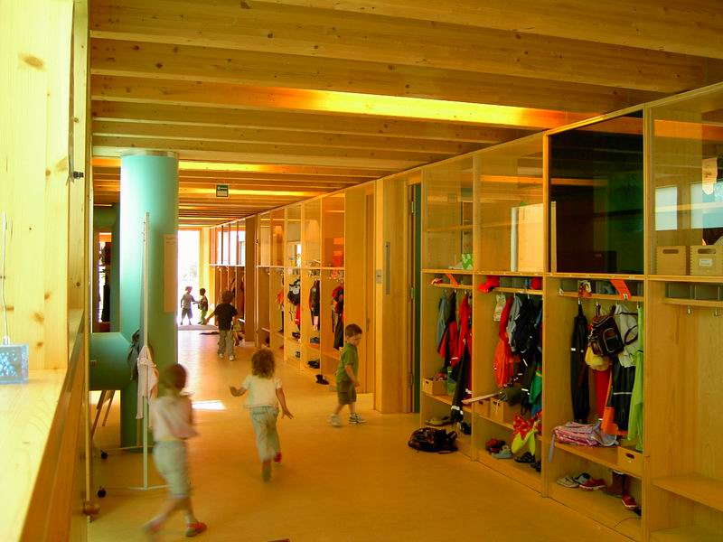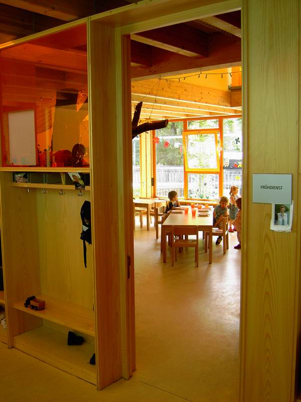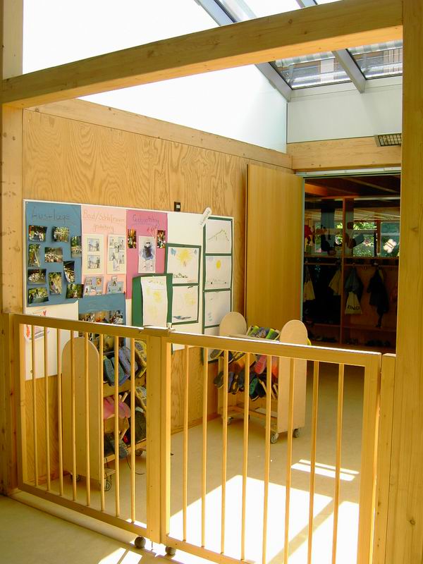 Ein Eingang zum Kindergarten. Im Kindergarten eine schöne und große Halle ... ... mit viele Licht und Farbe.