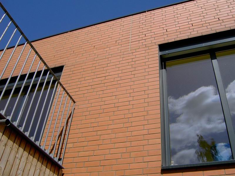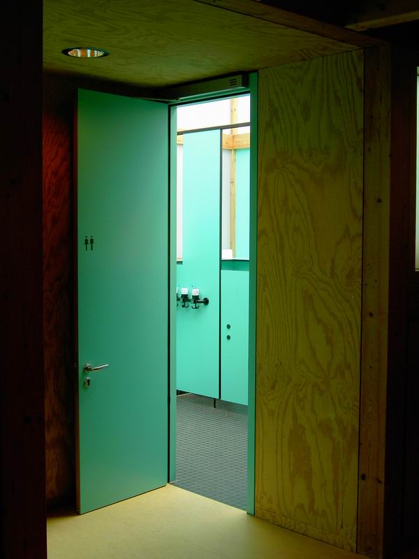 ... mit Klinkerfassade. Toiletten im zentralen Trakt, von beiden ...  ... Seiten zugänglich.