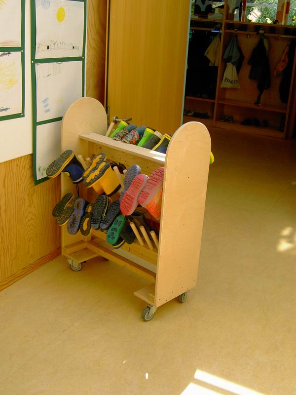 Raffinierte Lösung für die Gummistiefel der Kinder. Nochmals ein Eingangsbereich mit "Gatter". 2. Obergeschoss