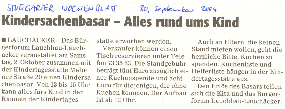 Am 2. Oktober 2004 veranstaltete das Bürgerforum Lauchhau-Lauchäcker