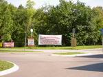 Banner gemalt und am Kreisverkehr aufgehängt.