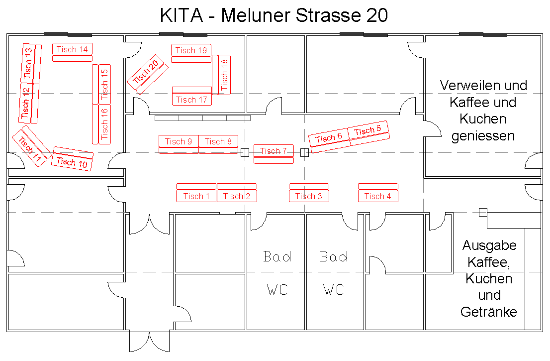 Tisch kostet mit Kuchenspende 5,- € und ohne 8,- €.