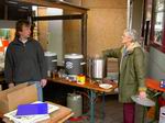 und Helfer gönnen sich ein Päus'chen bei einer Tasse