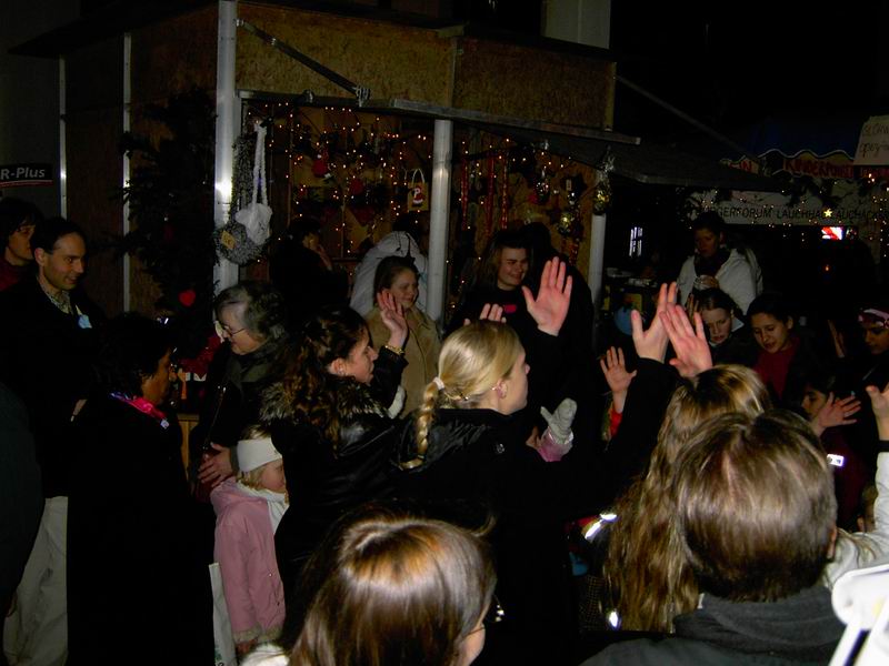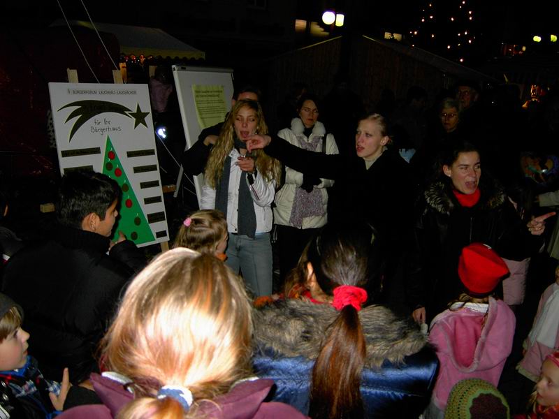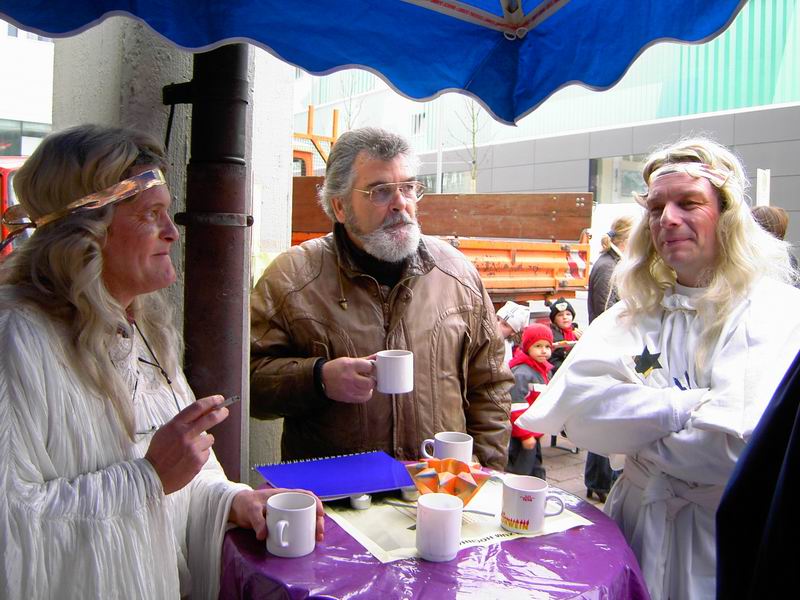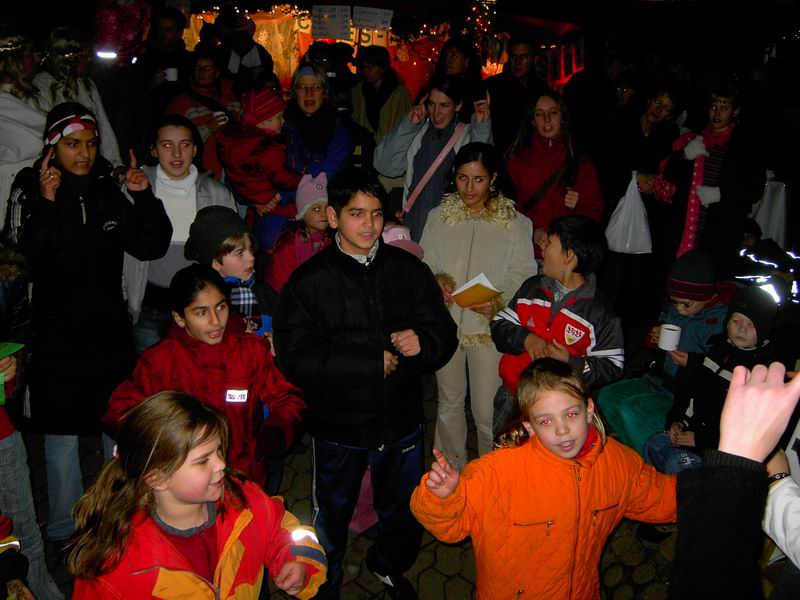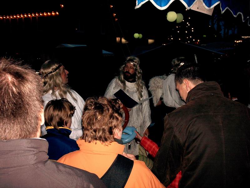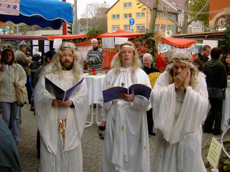 Engel helfen den Mitsingenden, wann sie was singen sollten.