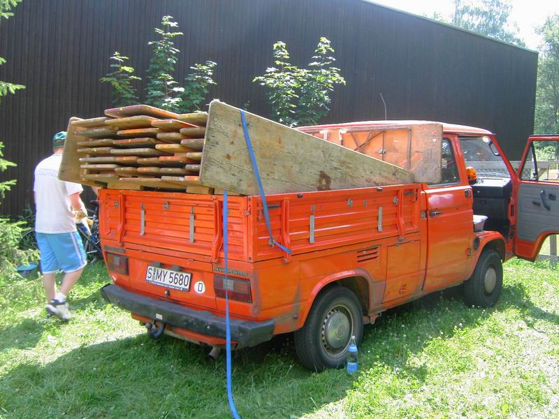 Um alle Garnituren transportieren zu können, mussten wir sowohl ... ... den ASW-LKW als auch den Bully beladen.  Weil wir den LKW gleich wieder brauchten, um die Geräte für die ...
