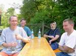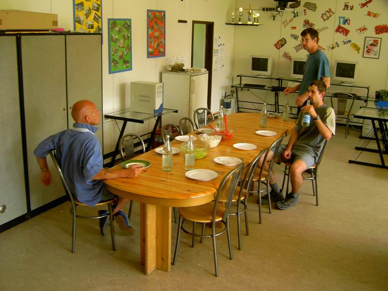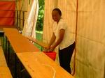 Da hilft's, wenn man so groß ist wie Thomas. Unsere amerikanischen Freunde von der IBC. Die Tische waren von der Lagerung ziemlich ...