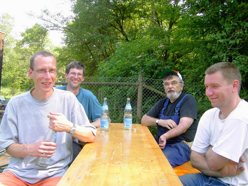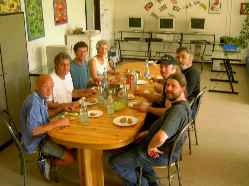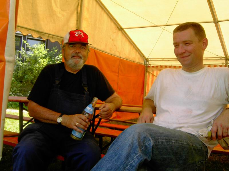 An diesem Nachmittag treffen so nach und nach immer weiter Helfer ein. Alle helfen mit, um das Fest von den Bewohnern für die Bewohner ... ... aufzubauen. Wie man sieht, haben alle auch Spaß dabei.