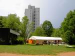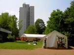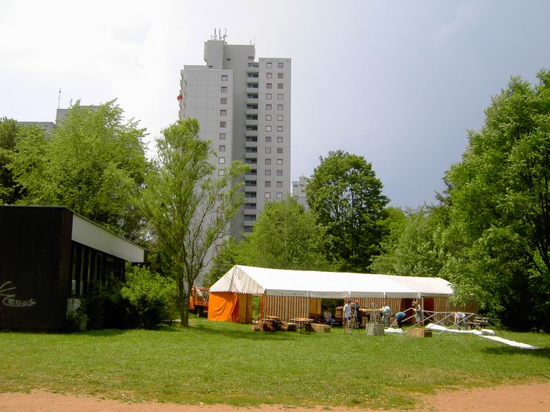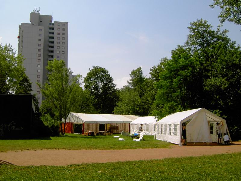 Und so sieht's mittlerweile auf dem Festplatz aus. Jetzt holen wir die ... ... drei Zelte vom
