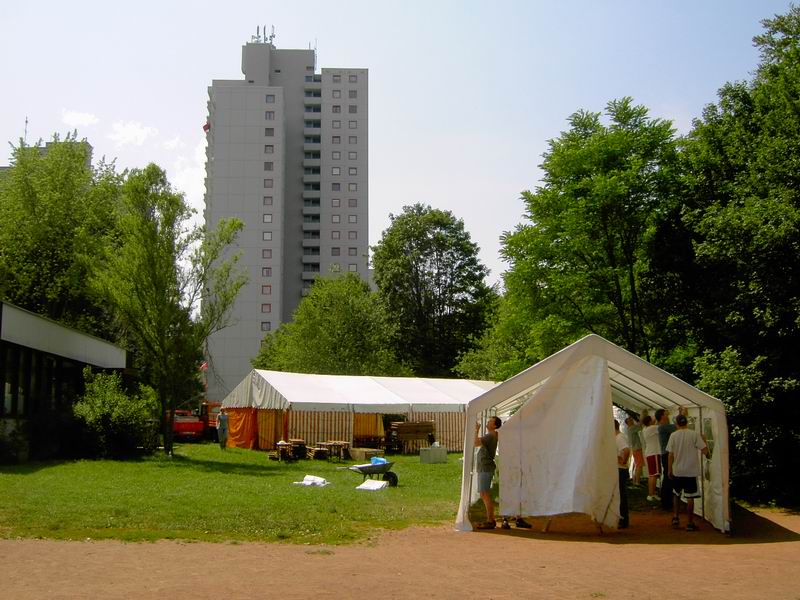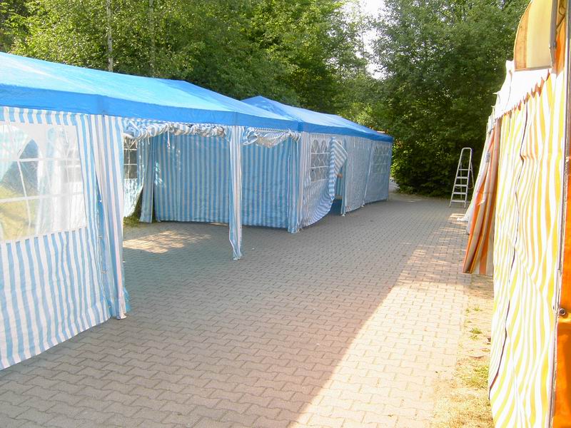 So, jetzt ist alles geschafft. Alle Zelte stehen und wir lassen's ausklingen! Ach ja, das Zirkuszelt haben wir auch noch aufgebaut.