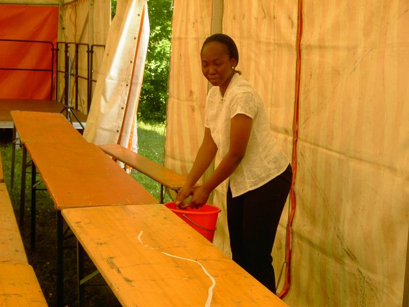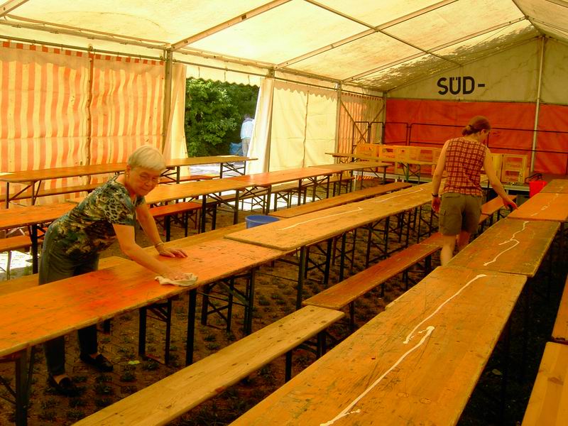 ... verschmutzt. Da hilft nur kräftig putzen. Dann gibt's auch mal eine Pause zwischendurch. Und schon geht's weiter mit den BüFo-Pavillons.