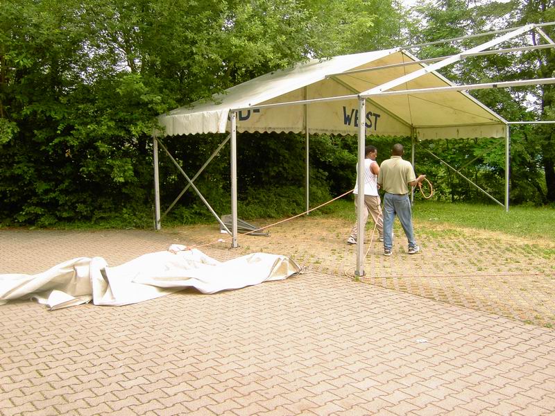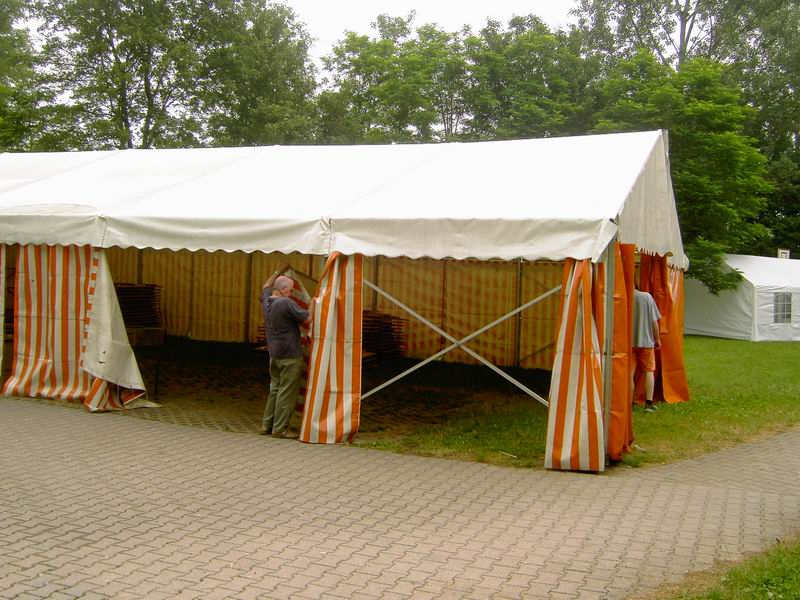 Die beiden weißen Zelte sind auch geliehen und da sollte dann