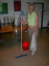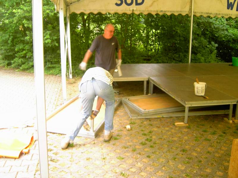 Hans beginnt mit dem Abbau der Bühne. |