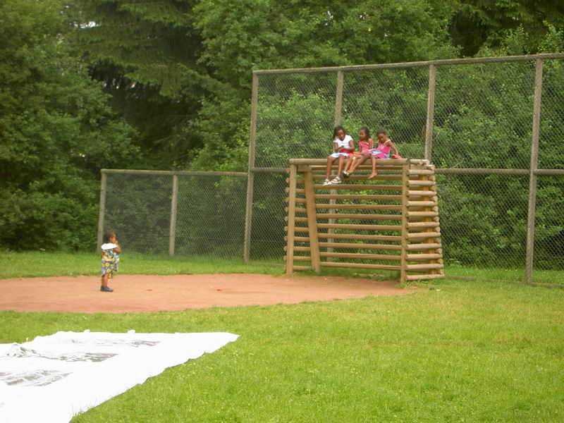 Die eritreischen Mädchen schauen vom Logenplatz zu. |