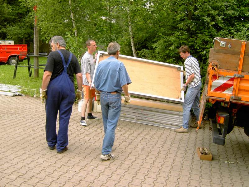 Derweil laden die Helfer vom Bürgerforum die Bühnenelemente
