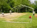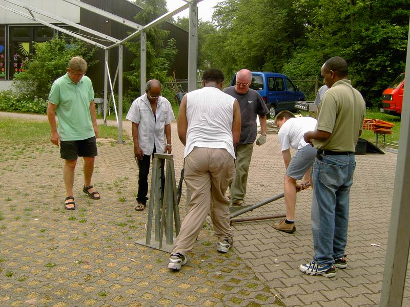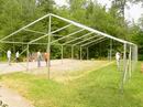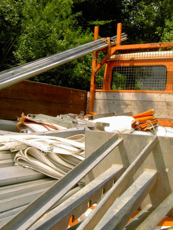 Das Zeltgestänge wird Feld für Feld abgebaut. |