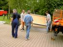 Auch die Posterständer kommen gleich auf den LKW. |