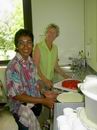 Christy und Rita machen in der Küche klar Schiff. |