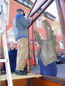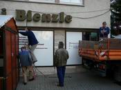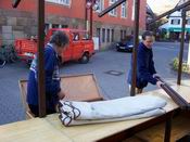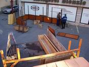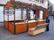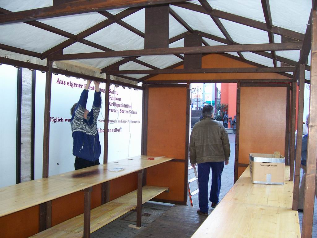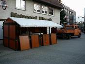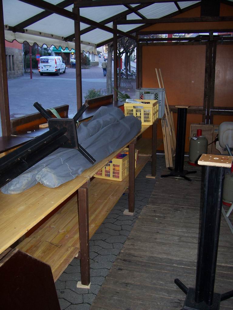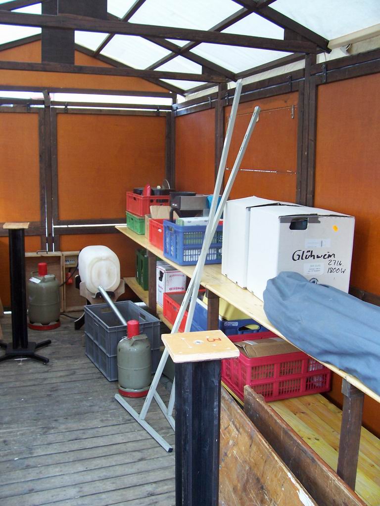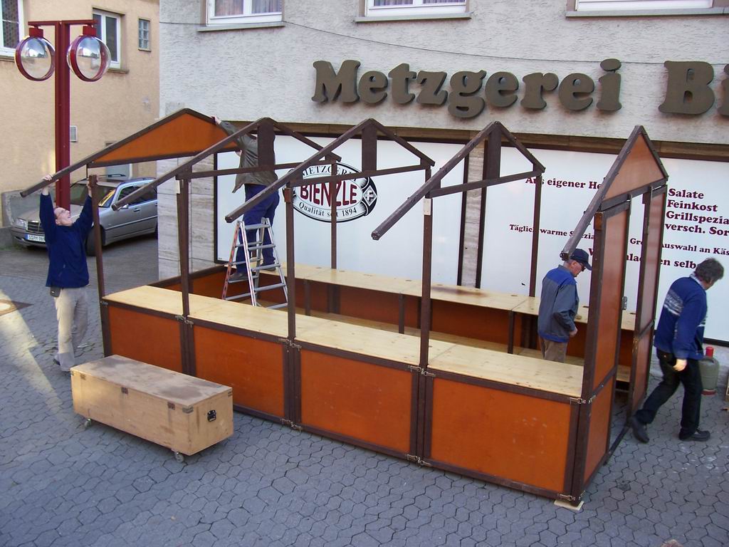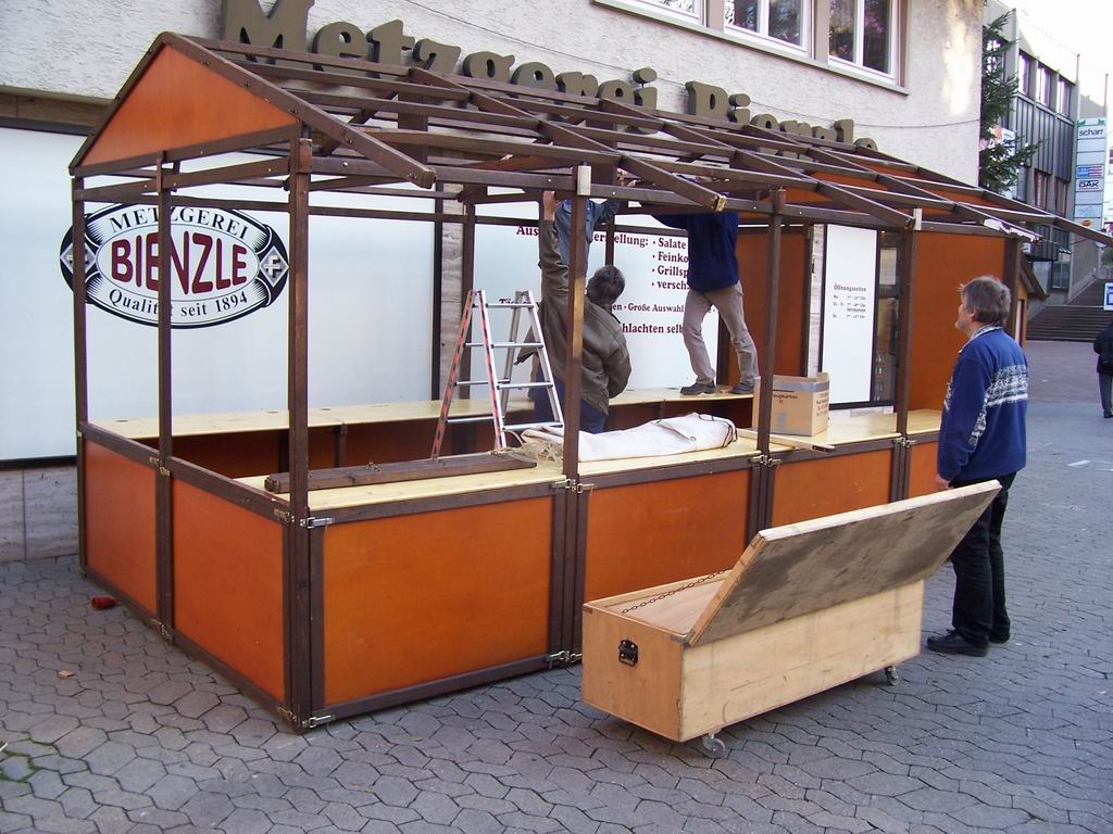 Die vorderen Wandteile zum verschließen des Standes über Nacht stehen bereit..