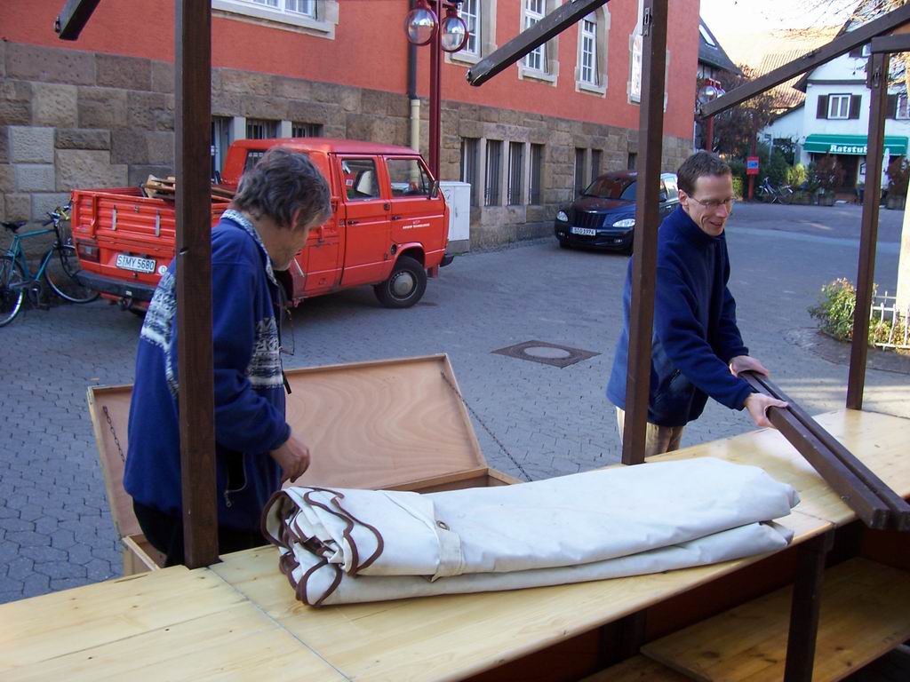 Das ist die Plane und die "Dachlatten" des Marktstanddaches.