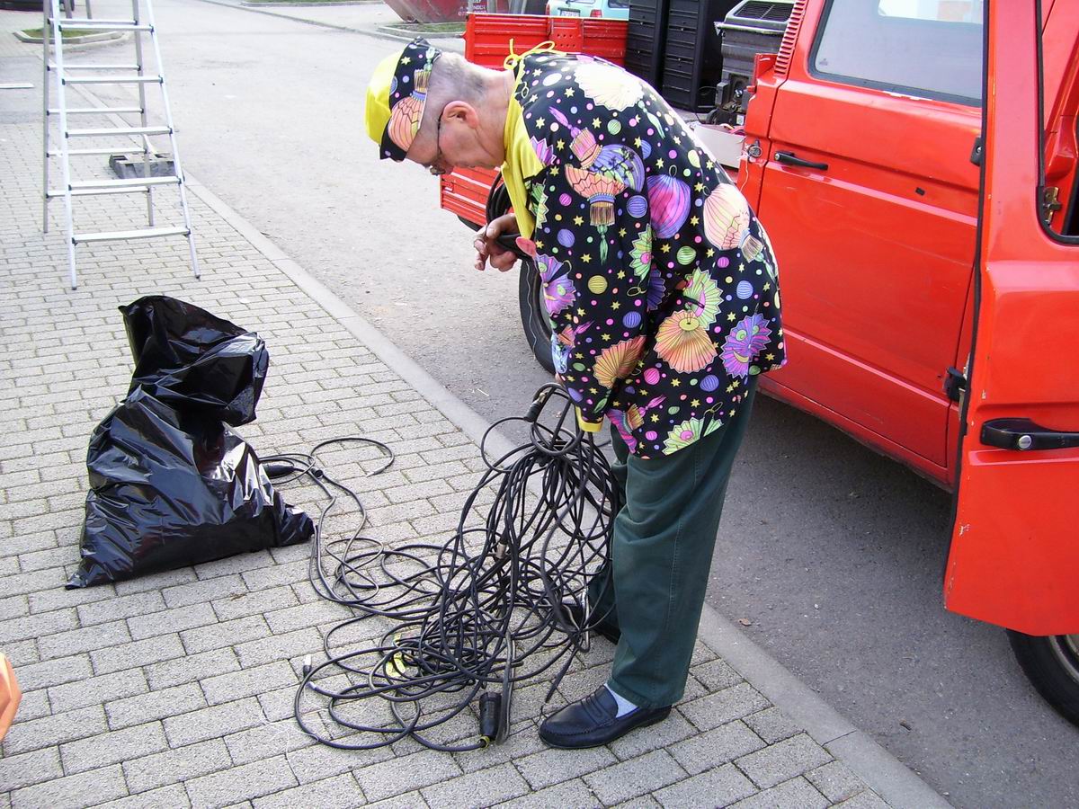 Und beim Abbauen müssen alle Helfer wieder mit anpacken. Tische und Bänke müssen aufgeladen und ... ... die Kabel entwirrt  werden.