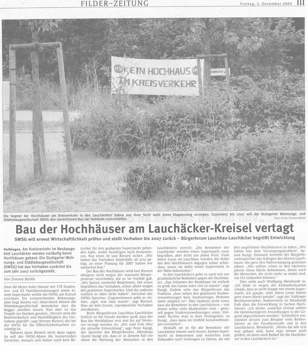 Bürgerforum Lauchhau-Lauchäcker, das dann in der Ausgabe vom