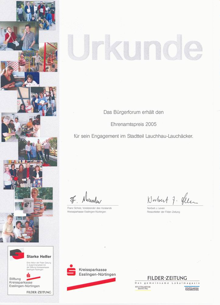 tatsächlich, das Bürgerforum Lauchhau-Lauchäcker erhält den