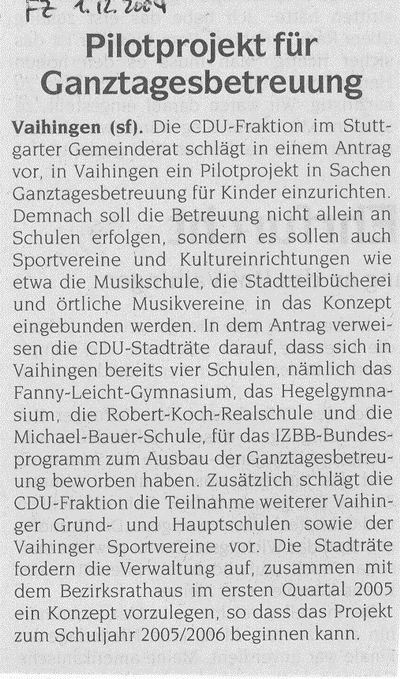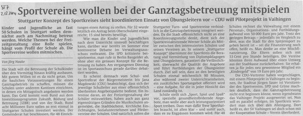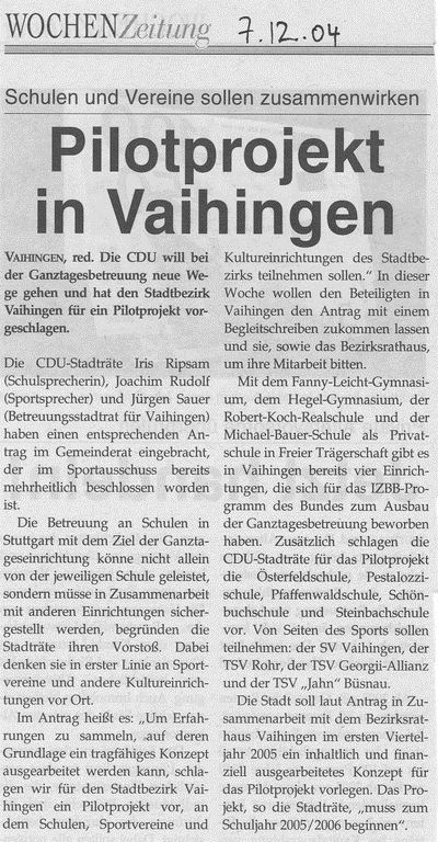 Übungsleitern vor - CDU will Pilotprojekt in Vaihingen
