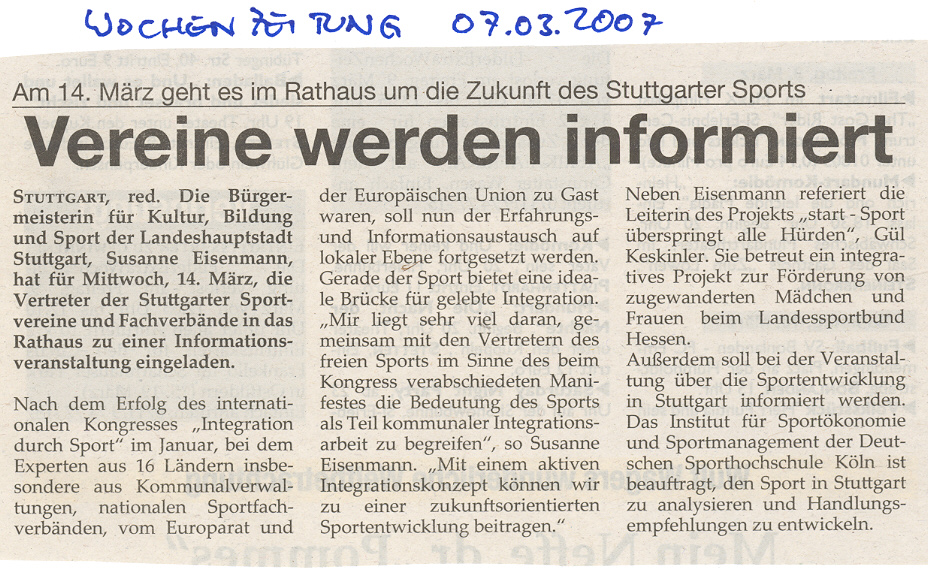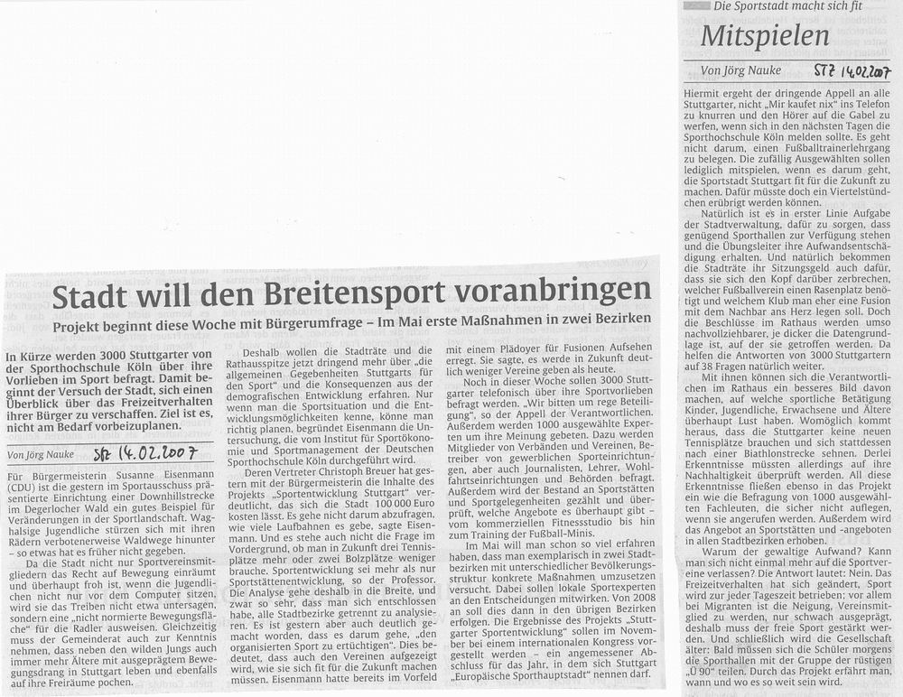 als Herausforderung für Sportvereine Stadtforum Sport: der Weg in