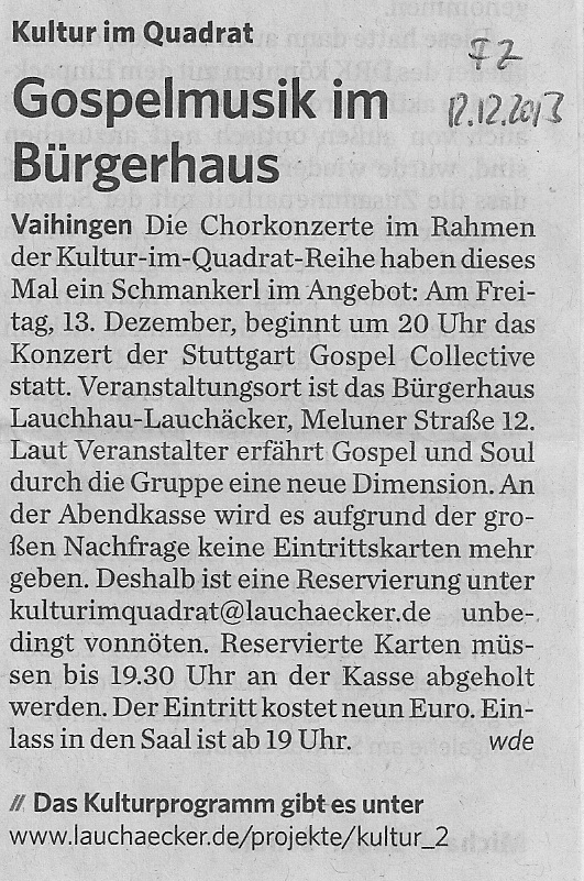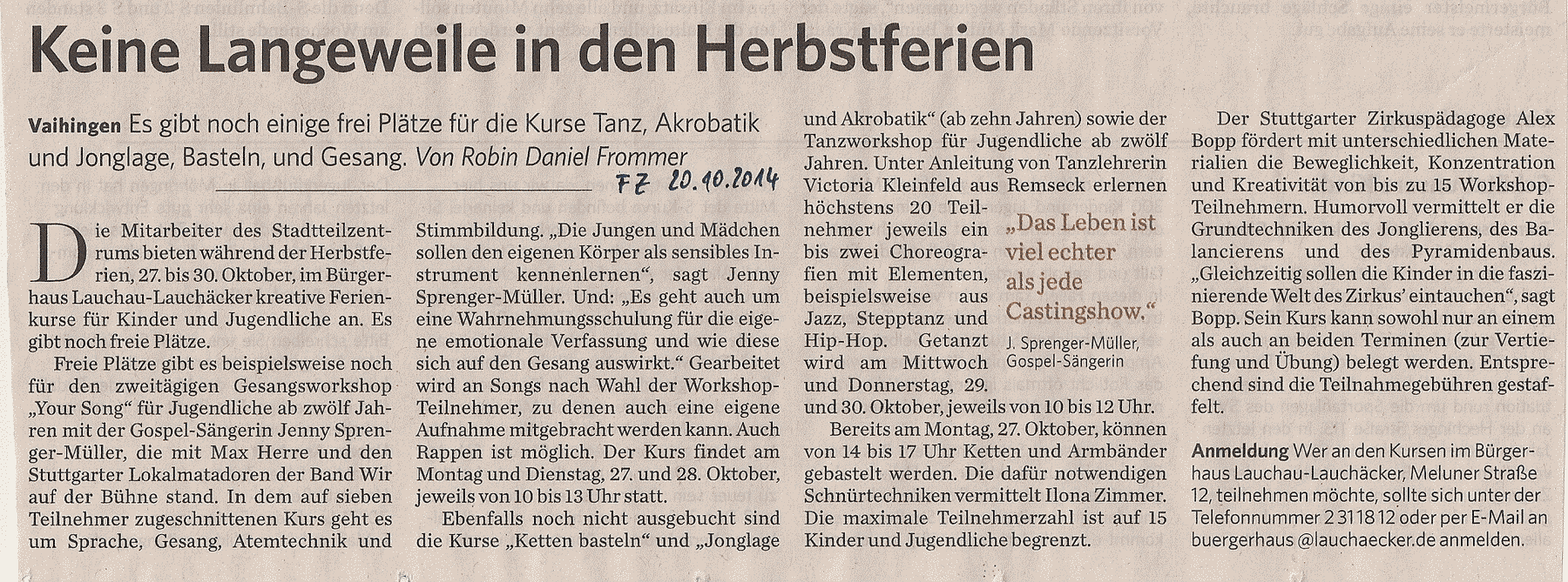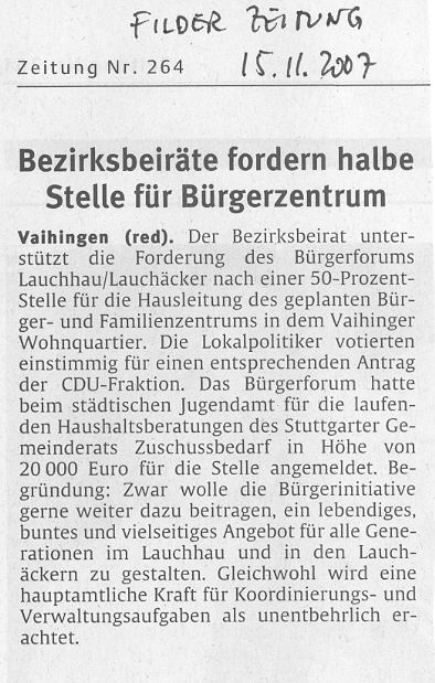 30. Oktober 2015 im Bürgerhaus Lauchhau-Lauchäcker |