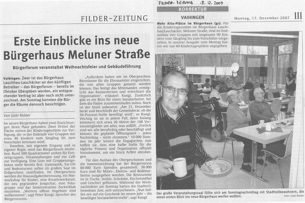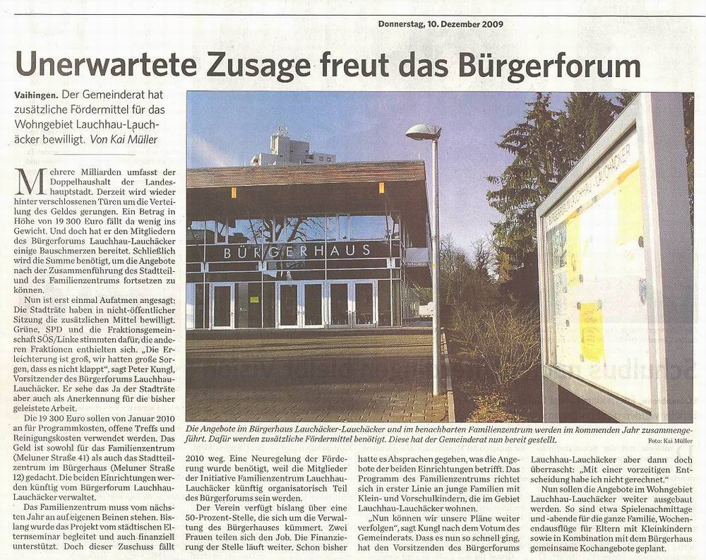 Bürgerhaus Lauchhau-Lauchäcker von 14 bis 18 Uhr ein