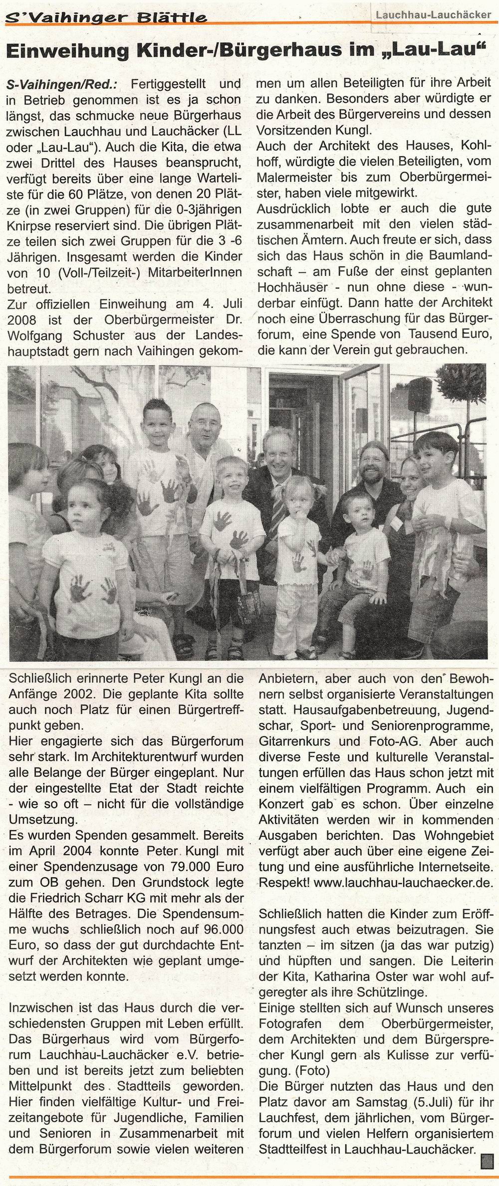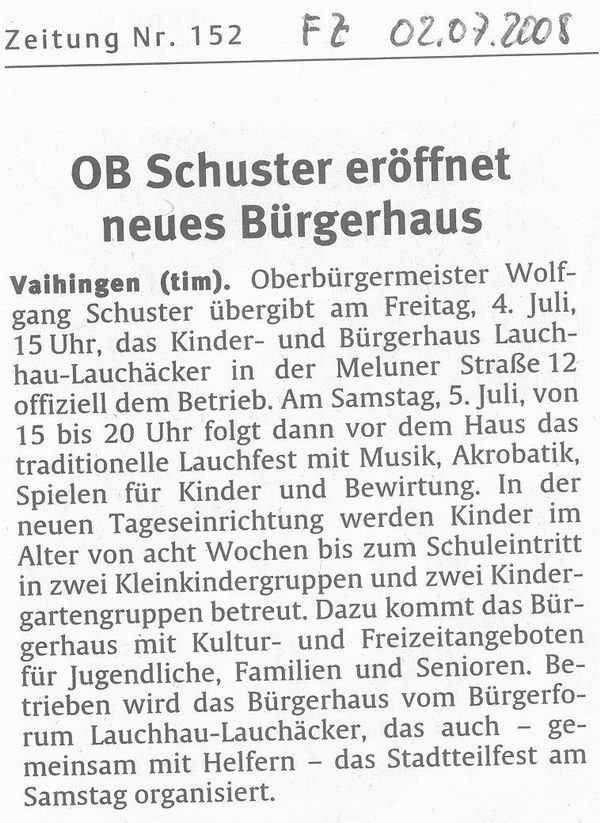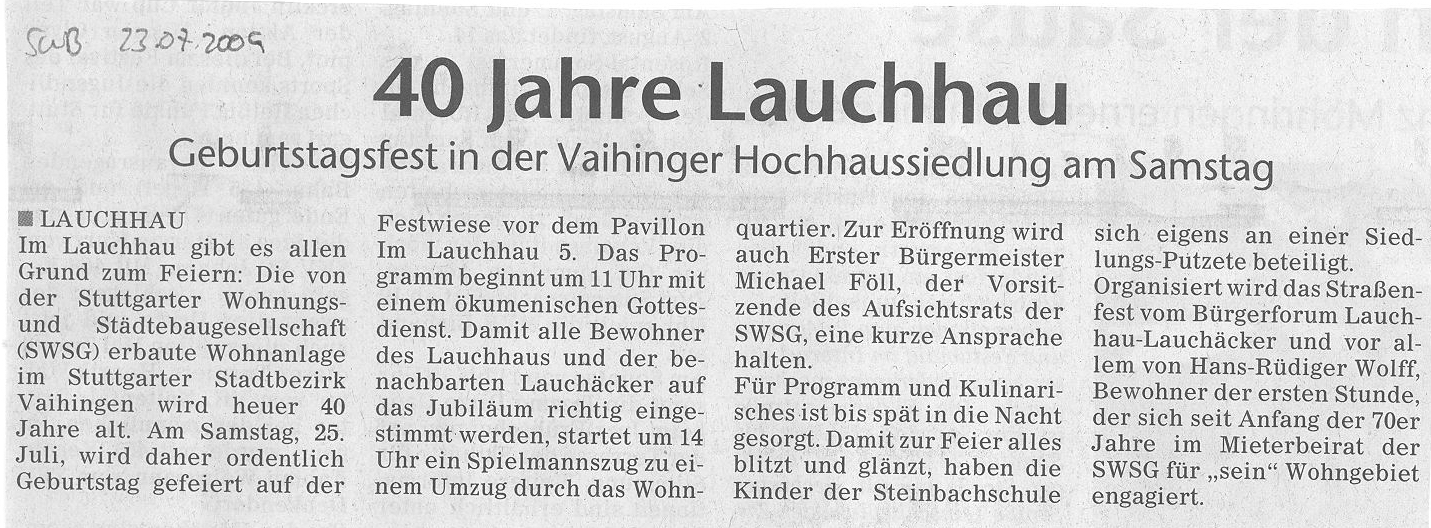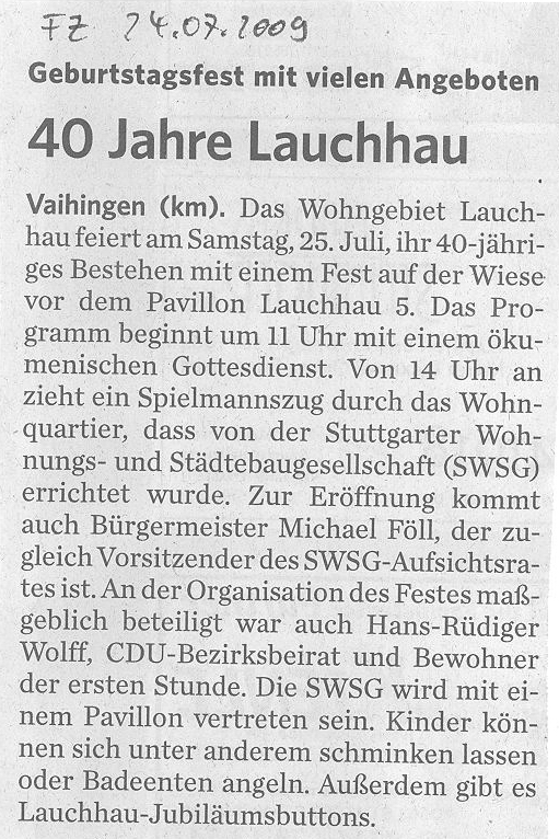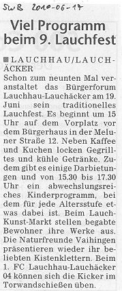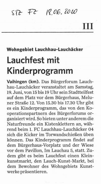 Kurzbericht mit Farbfoto vom LAUCHFEST am