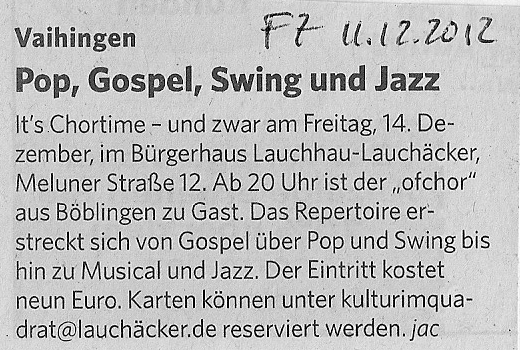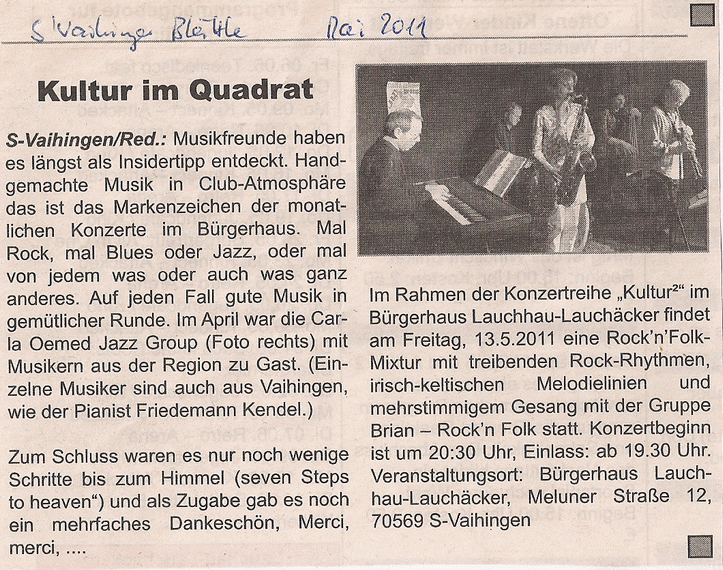 Konzert am 8. Mai 2015 im Bürgerhaus Lauchhau-Lauchäcker |