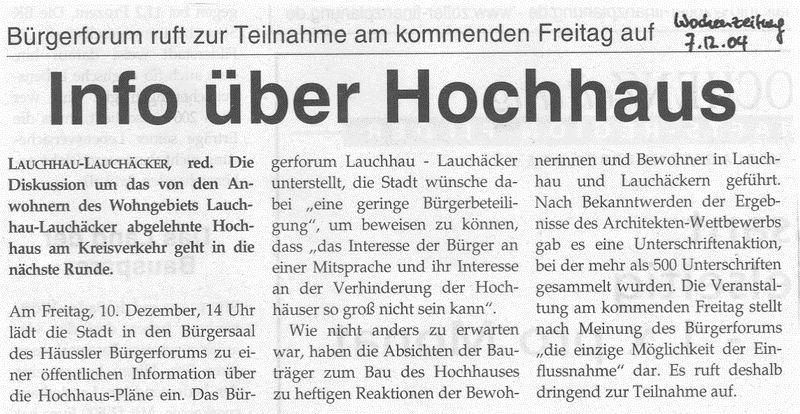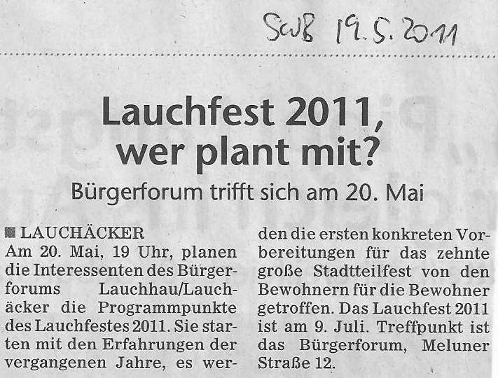 Lauchäckern zurück - Am Freitag Infoveranstaltung