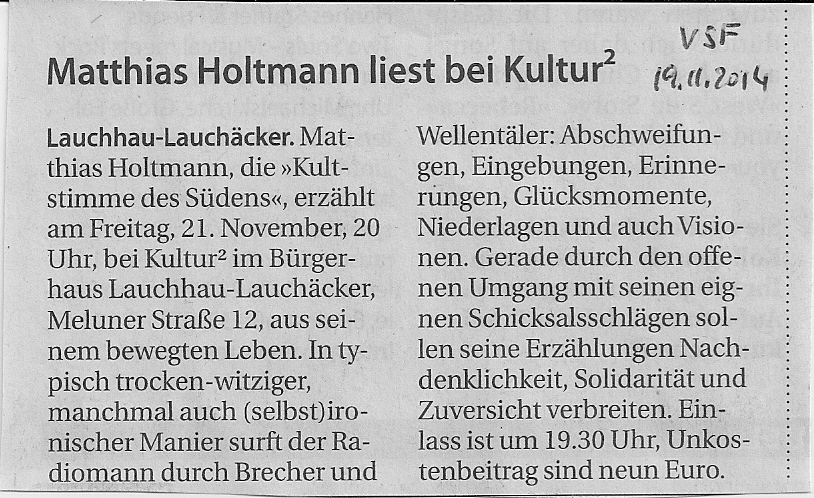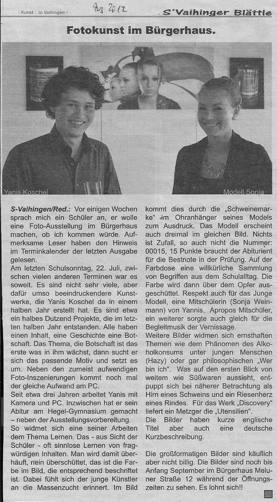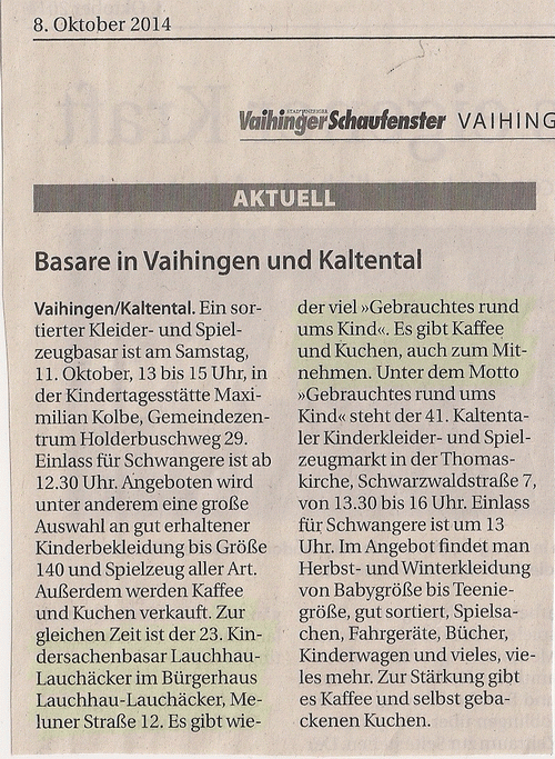 Terminhinweis mit Farbfoto in der Rubrik "Service" unter