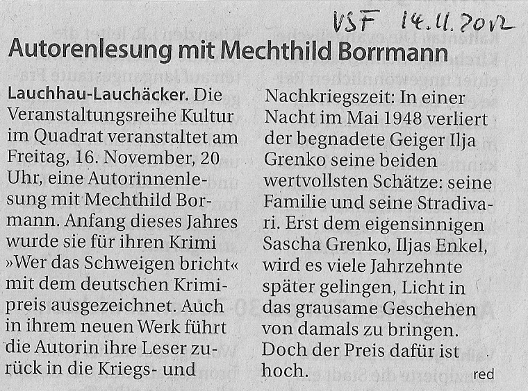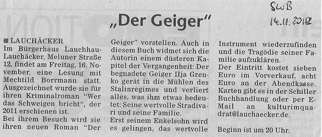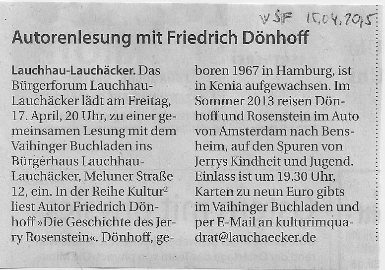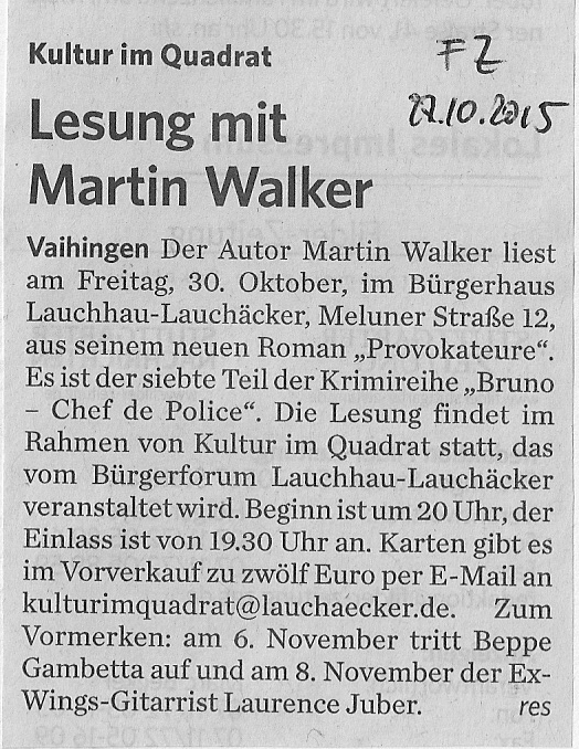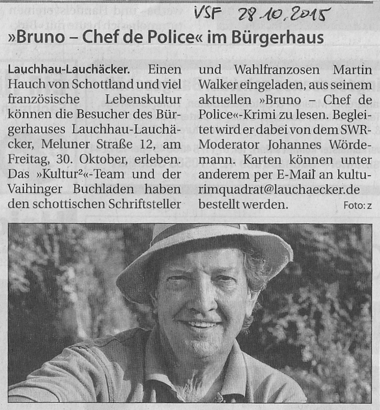 Ankündigung der Lesung von Martin Walker aus "Boris,
