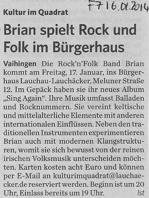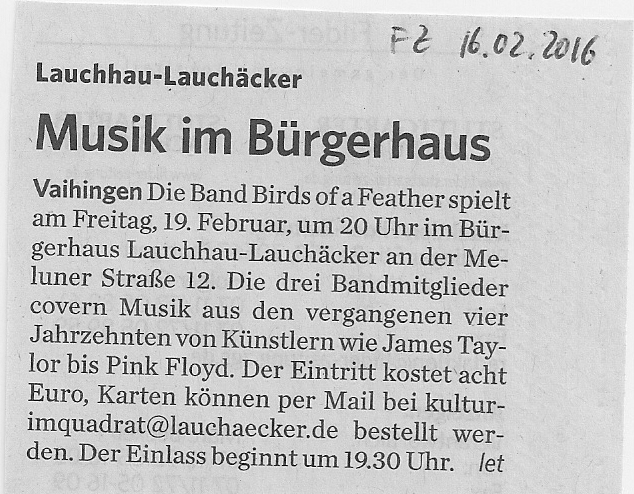 das Konzert mit Birds of aFeather am 19. Februar 2016 im Bürgerhaus Lauchhau-Lauchäcker |