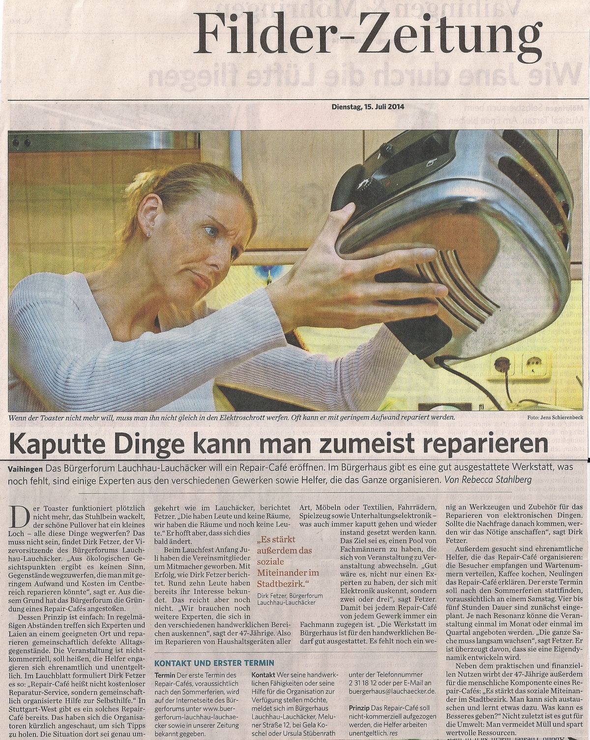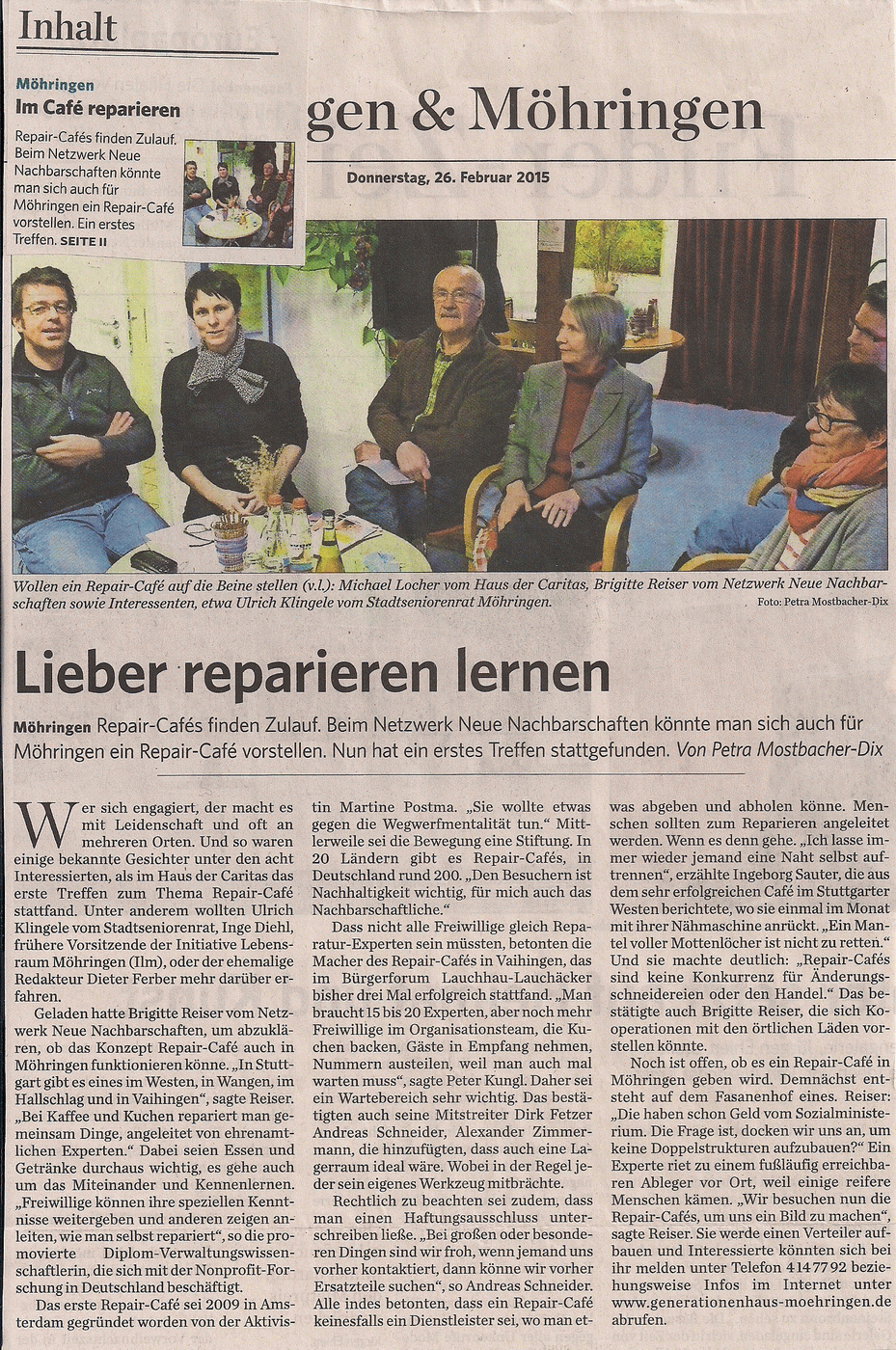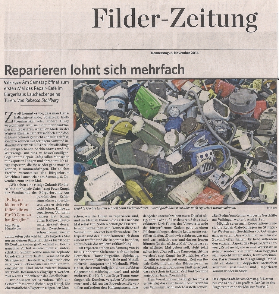 Ankündigung 8. Repair Cafe im Bürgerhaus