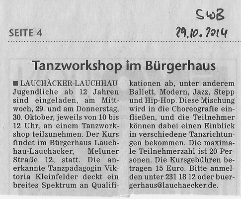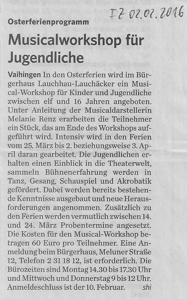 Hinweis auf den Musical-Workshop im Bürgerhaus